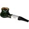 La CP2 destaca por su acabado barnizado y su color verde, que le da una presencia única dentro de la serie. Su forma curvada la hace cómoda de sostener y favorece un manejo equilibrado. El anillo metálico actúa como acento de diseño, mientras que la estructura interior protege la calidad del humo, combinando funcionalidad con estética.