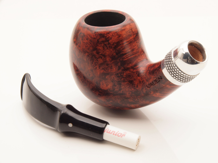 Uno de sus detalles distintivos es su anillo metálico, que aporta un toque de sofisticación y refuerza la durabilidad en la unión entre boquilla y cuerpo. Incorpora una boquilla de acrílico resistente, cómoda en boca y duradera, manteniendo los altos estándares de fabricación de Vauen.