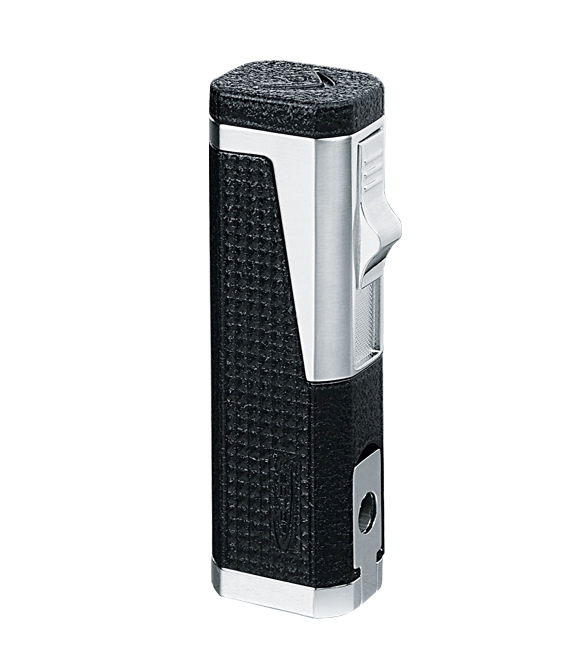 Cuenta con una potente triple llama de soplete (jet blue flame) que garantiza un encendido rápido y seguro bajo cualquier circunstancia. Además, incluye un visor de gas para controlar el nivel fácilmente, un punch incorporado para preparar tus puros sin necesidad de accesorios adicionales, y un sistema de apertura automática para un uso ágil y cómodo.